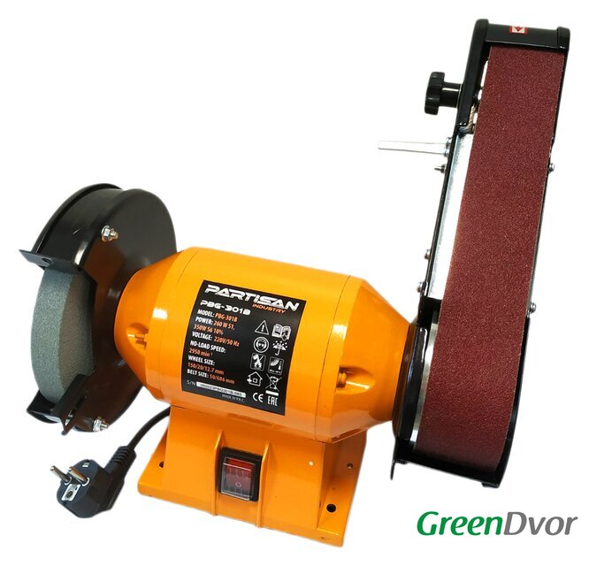Комплект поставки | - Станок точильный - 1 шт- Защитное стекло - 2 шт- Искроуловитель - 2 шт- Точильный круг - 2 шт- Шлифовальная лента - 1 шт- Упаковка- Инструкция по эксплуатации |
