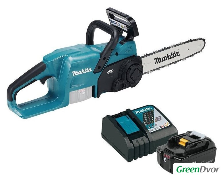 Комплект поставки | - Бензопила MAKITA DUC307ZX3;- Шина;- Цепь;- 1 аккумулятор BL1850B емкостью 5,0 Ач;- 1 зарядное устройство DC18RC. |