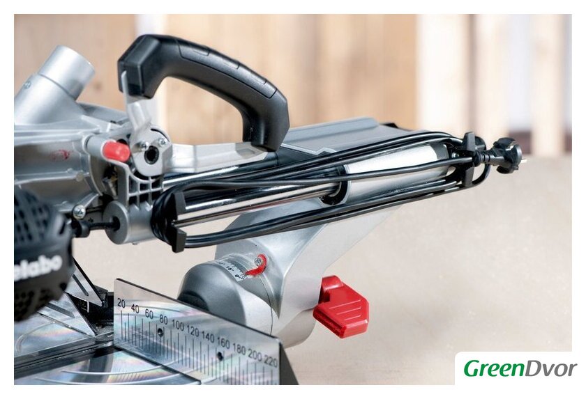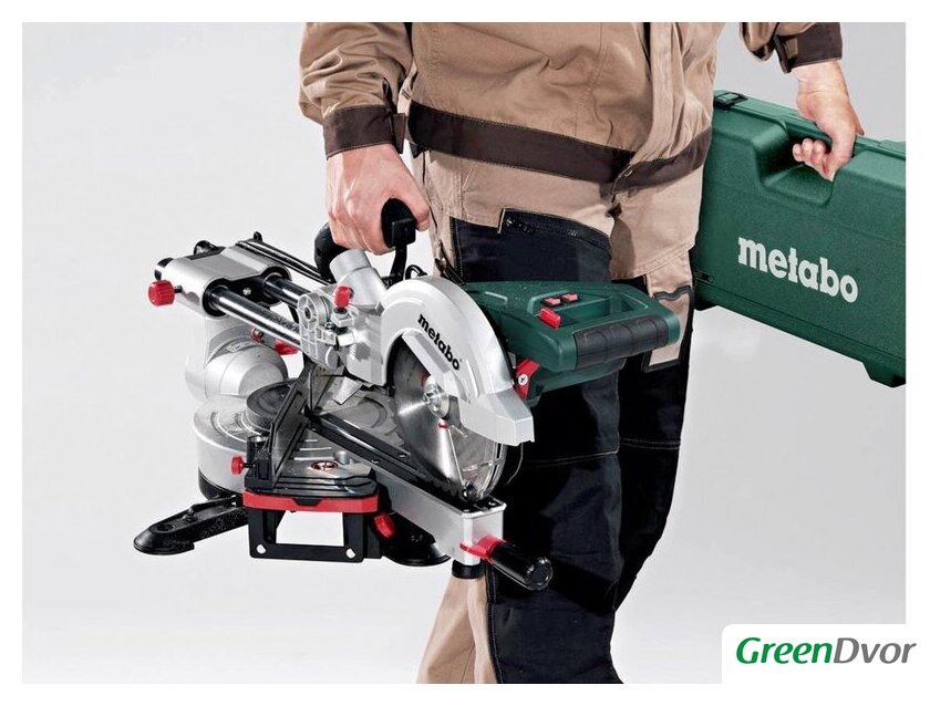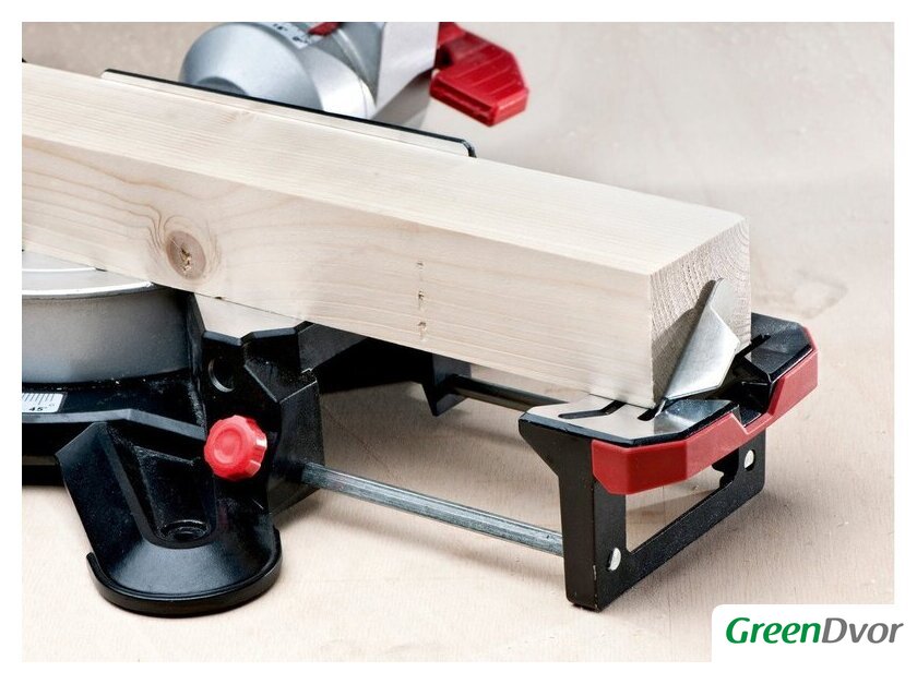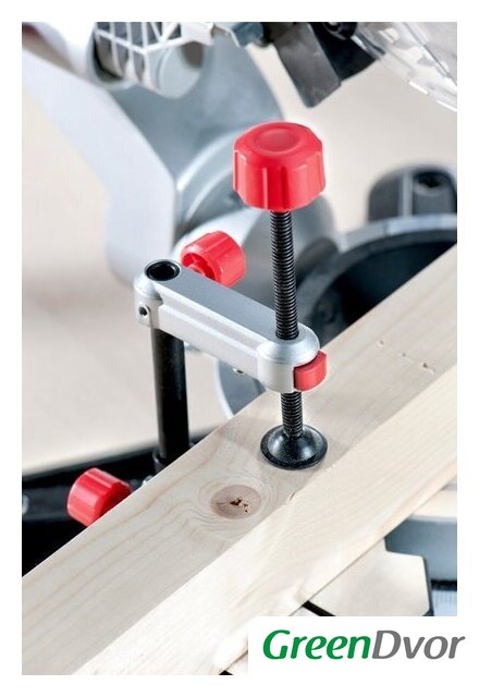 Комплектация | Твердосплавное пильное полотно (40 зубьев)2 встроенных расширения столаТорцовочный упорЗажим для материалаИнструмент для смены пильного дискаНамотка кабеляМешок для сбора опилок |
