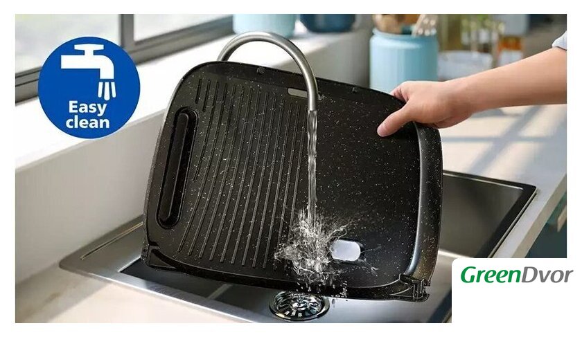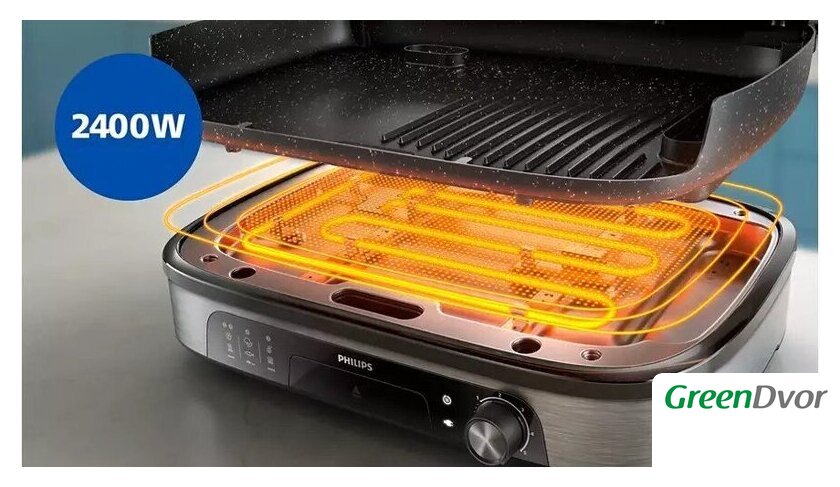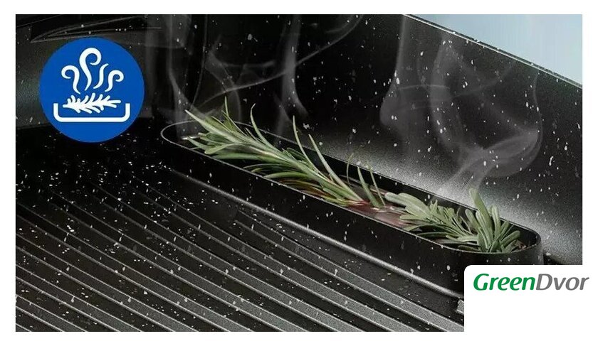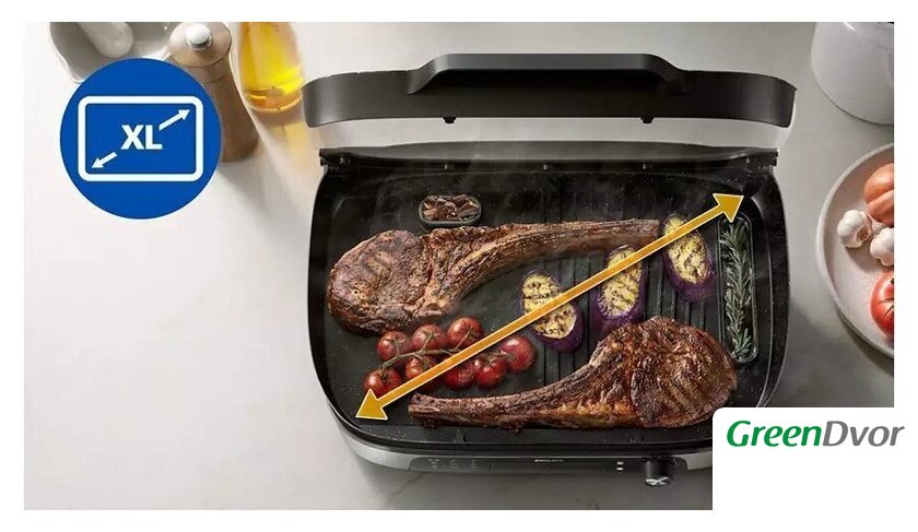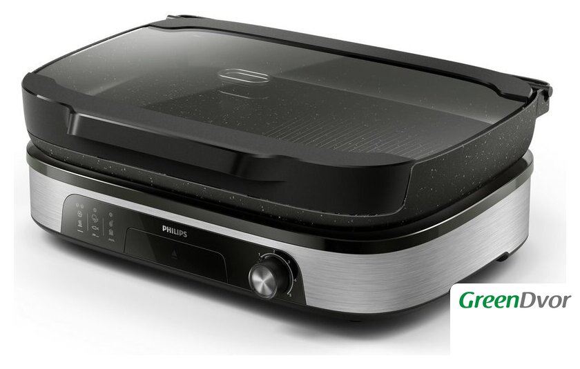 | Комплектация | стеклянная крышка, съемные гриль-плиты, контейнер-сеточка для специй и трав, съемный поддон для жира, руководство пользователя |