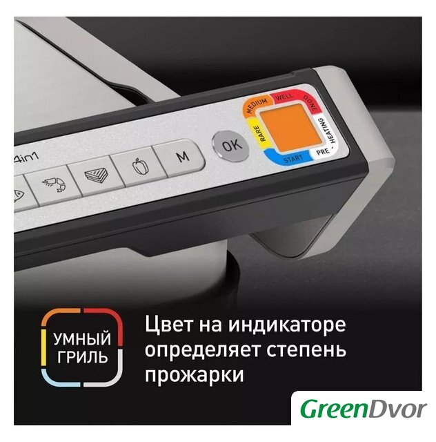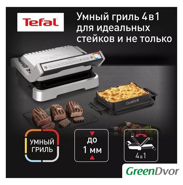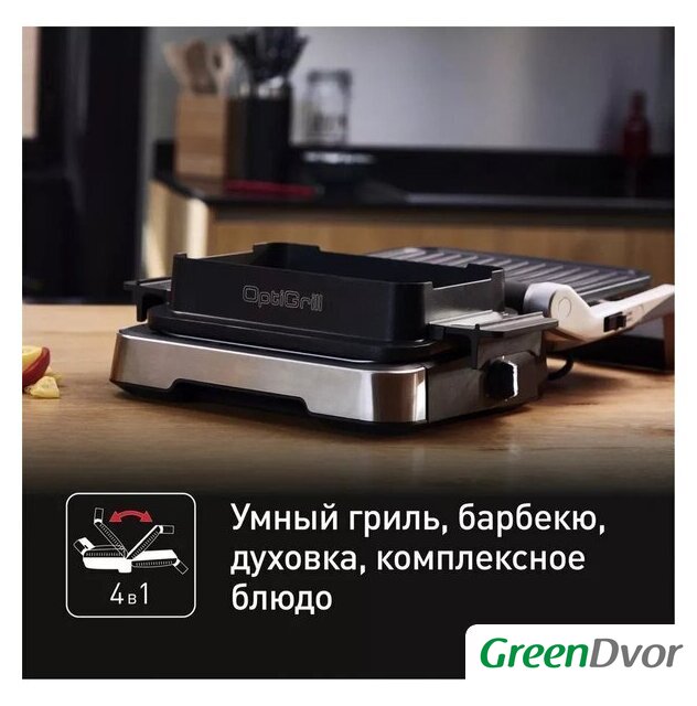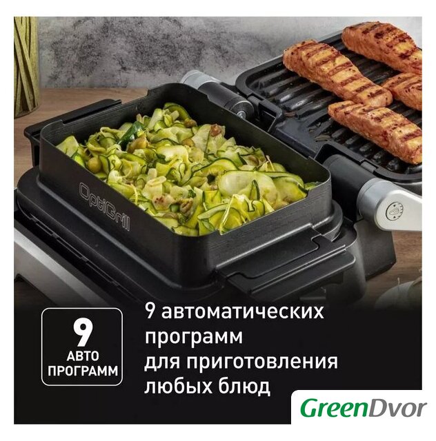 | Комплектация | съемный поддон для сока и жира, съемные пластины, индикатор нагрева, насадка для запекания |