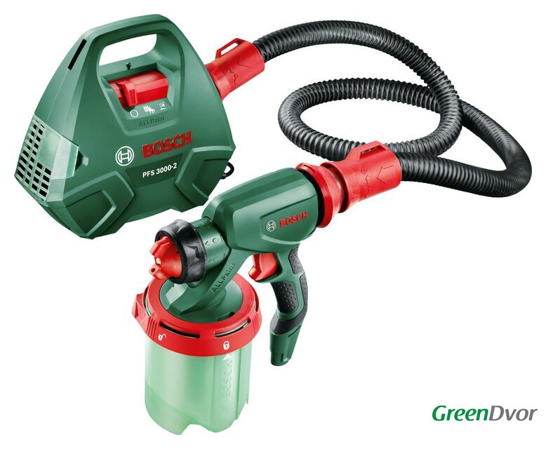 Комплект поставки | - PFS 3000-2 (0603207100)- Насадка для эмалей и лазурей (серая)- Насадка для водоэмульсионной краски (белая)- Цветной фильтр- Щетка для очистки- Ремень для переноски- Емкость для краски об. 1000 мл, с крышкой |