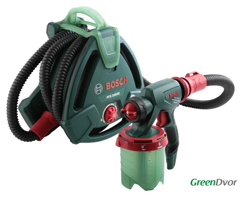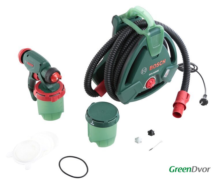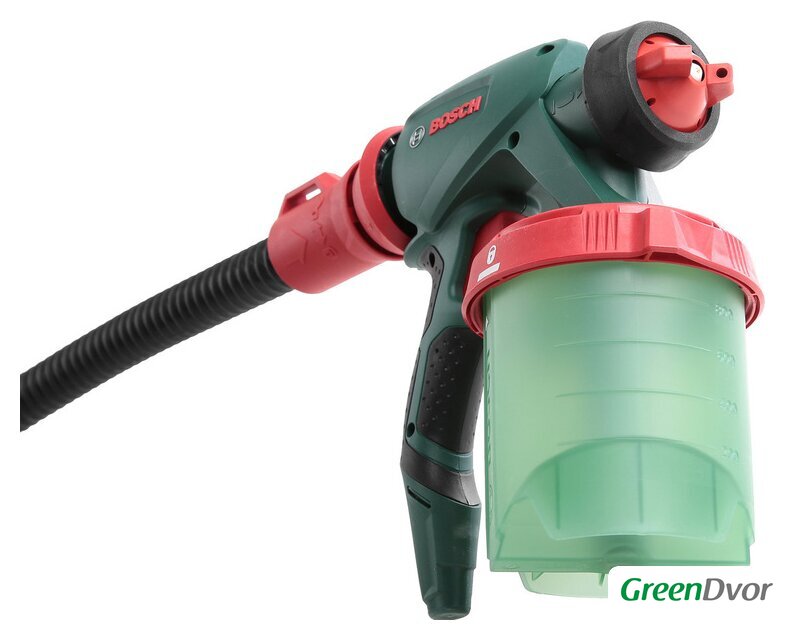 Комплект поставки | - Насадка для эмалей (черная)- Насадка для лазурей (серая)- Насадка для водоэмульсионной краски (белая)- Цветной фильтр- Щетка для очистки- 2 емкости с краской об. 1000 мл, с крышкой |