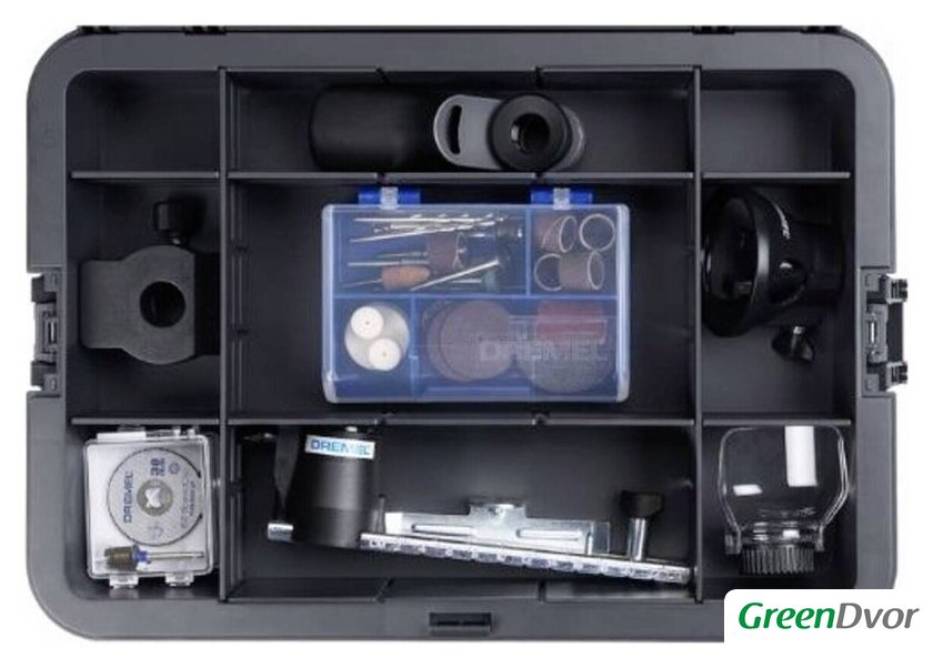 | Комплектация | - Dremel 8250, - 5 комплектующих устройств Dremel 550, 565, 576, 577 и 678, - Комплект аксессуаров из 65 деталей, включая мандрел EZ SpeedClic., - 2 батареи 12 В 2Ач B12V20-01, - Charger GAL12V-20, - Гаечный ключ для затягивания точек поворота, - Краткое руководство и информационный лист по аксессуарам, - Коробка Dremel |