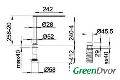 | Длина (вылет) излива | 242 мм |
