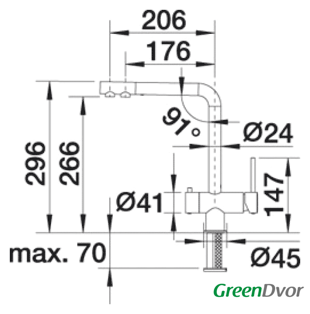 | Длина (вылет) излива | 206 мм |