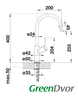| Длина (вылет) излива | 200 мм |