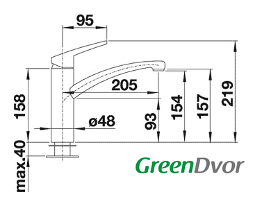 | Длина (вылет) излива | 205 мм |