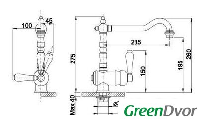 | Длина (вылет) излива | 235 мм |