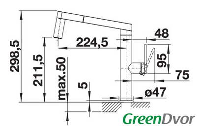| Длина (вылет) излива | 224.5 мм |