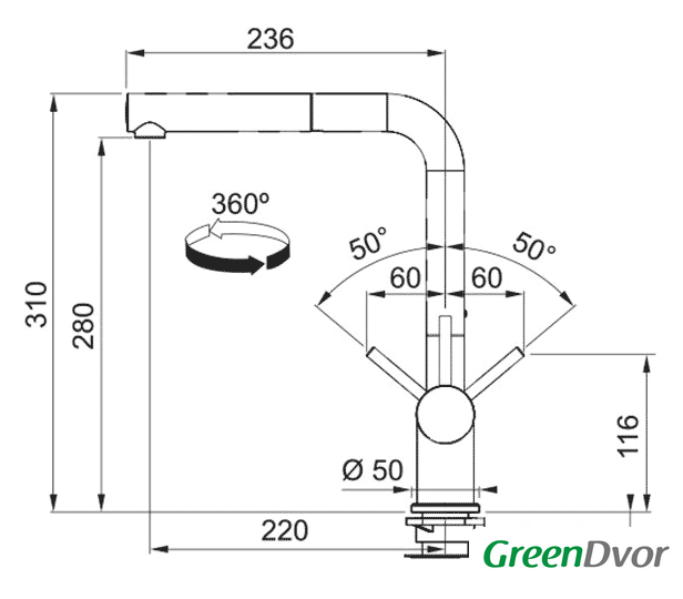 | Поворотный излив | 360 ° |