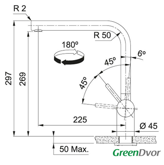 | Поворотный излив | 180 ° |