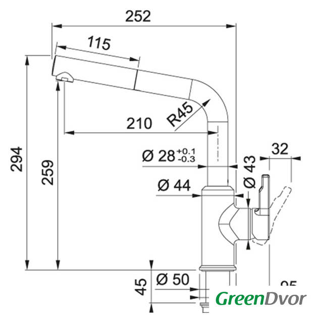 | Высота излива | 259 мм |