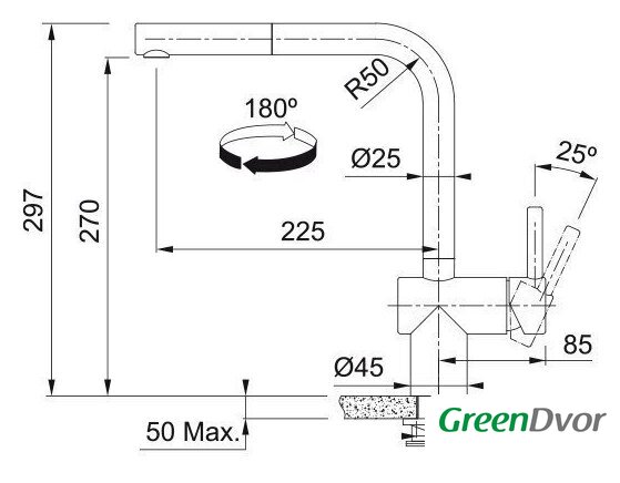 | Поворотный излив | 180 ° |