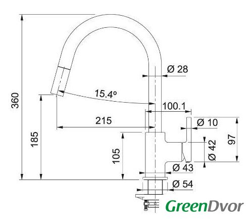 | Длина (вылет) излива | 215 мм |