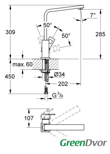 | Поворотный излив | 360 ° |