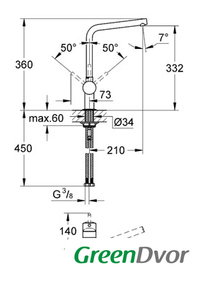 | Поворотный излив | 360 ° |