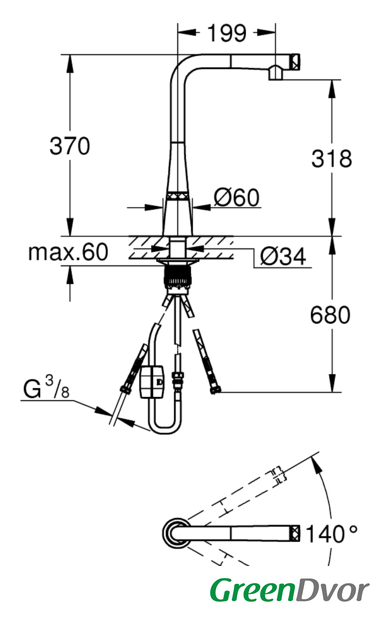 | Поворотный излив | 140 ° |