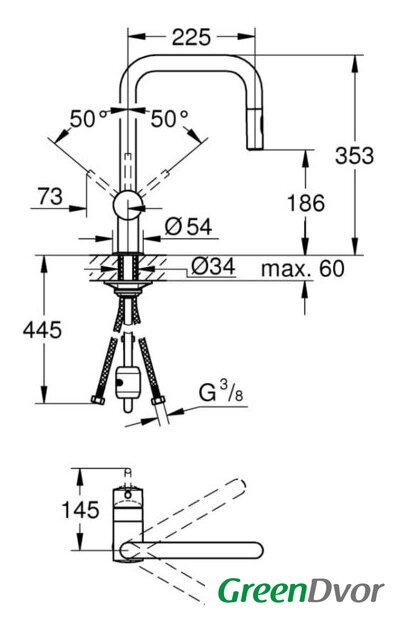 | Поворотный излив | 360 ° |