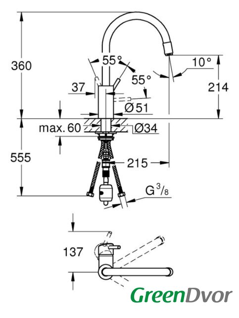 | Поворотный излив | 360 ° |