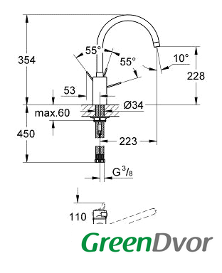 | Высота излива | 228 мм |
