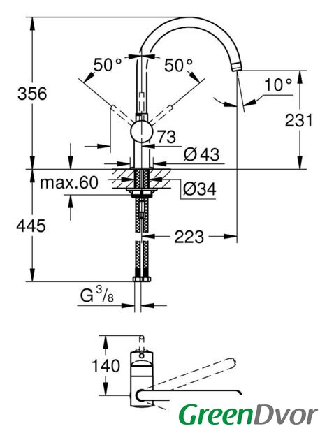 | Поворотный излив | 360 ° |