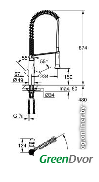 | Поворотный излив | 140 ° |