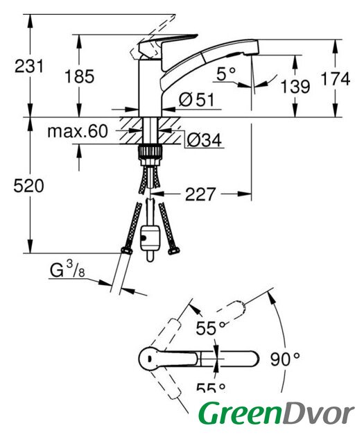 | Выдвижной/гибкий излив | c душевой лейкой |
