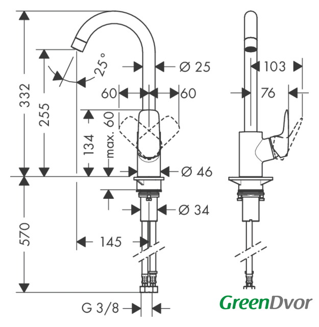 | Поворотный излив | 360 ° (либо 110/150°) |