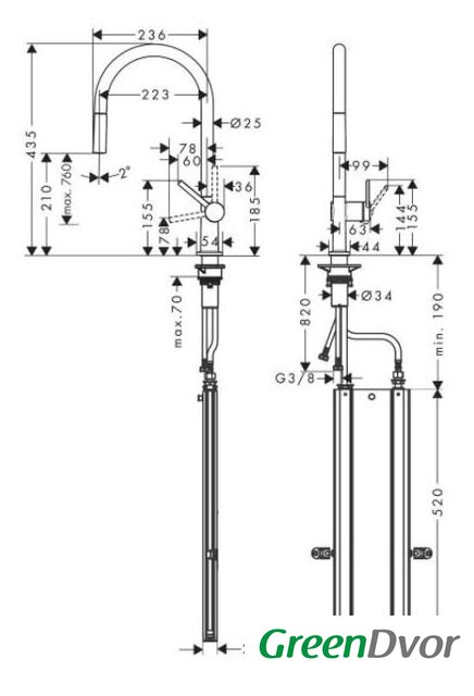 Высота 435 мм