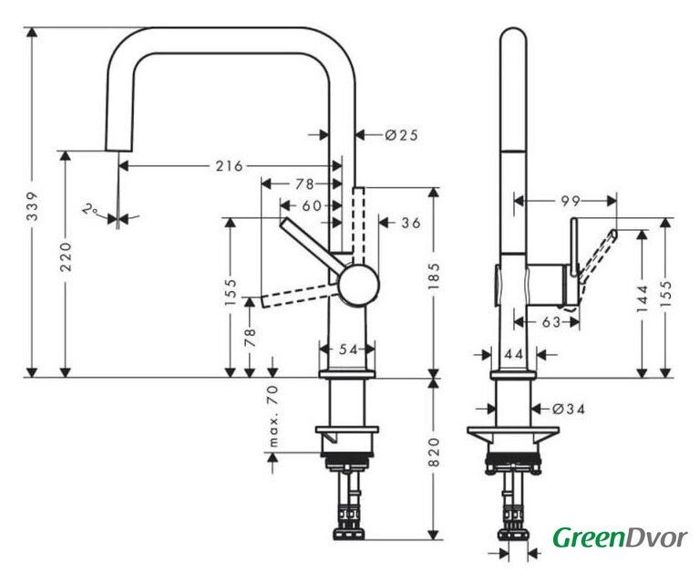 однорычажный смеситель для мойки, монтаж на раковину или столешницу