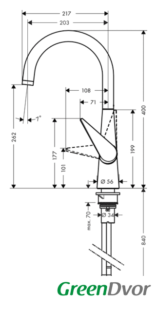 | Высота излива | 262 мм |
