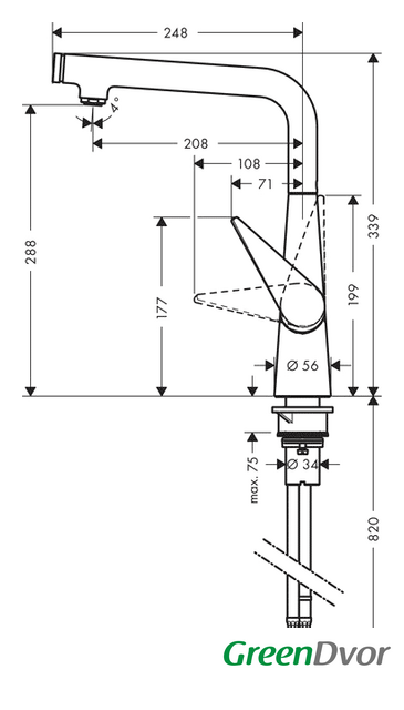 | Высота излива | 288 мм |