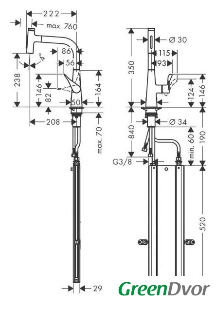 | Выдвижной/гибкий излив | аэратор+лейка |