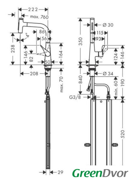 | Высота излива | 238 мм |