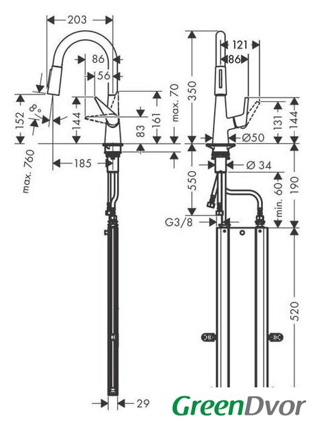| Выдвижной/гибкий излив | аэратор+лейка |