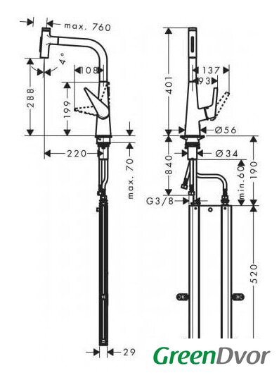 | Выдвижной/гибкий излив | аэратор+лейка |