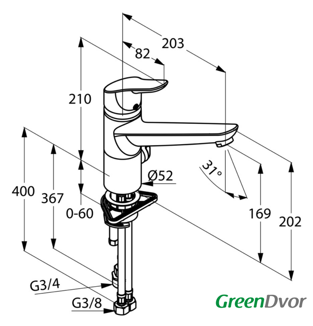 | Длина (вылет) излива | 203 мм |