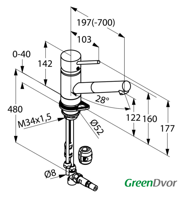 | Длина (вылет) излива | 197 — 700 мм |