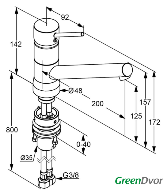 | Длина (вылет) излива | 200 мм |