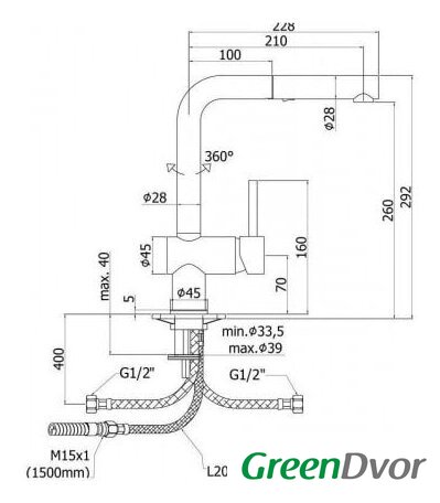 Высота излива 260 мм