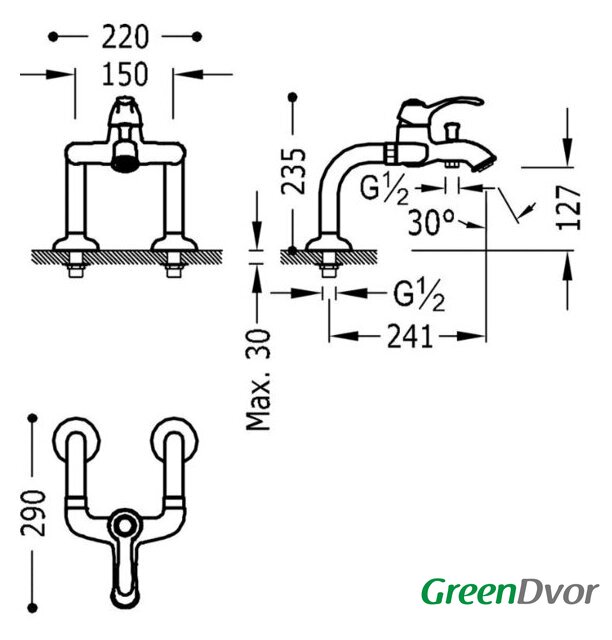 | Длина (вылет) излива | 241 мм |
