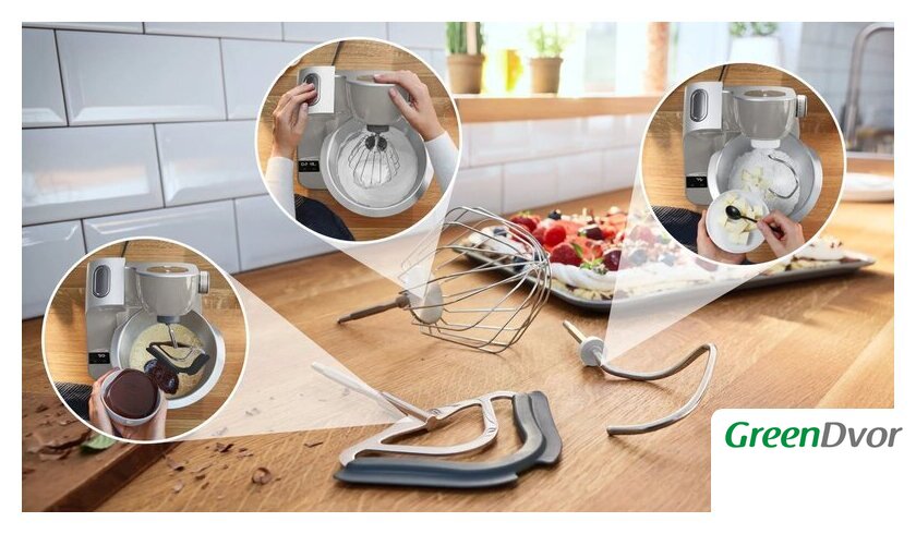| Полная комплектация | насадка для смешивания с силиконовым покрытиемнасадка для взбиваниякрюк для замешивания4 сменных диска из нержавеющей стали (6 функций): реверсивный диск для нарезки ломтиками (крупная и мелкая), реверсивный диск для нарезки ломтиками (крупная и мелкая), диск для мелкой терки и диск для нарезки картофеля драникамичаша блендера 1.25лCube Cutter: насадка для нарезки овощей, фруктов и мяса ровными кубикамиформирователь печеньяпластиковая чашапрозрачная крышка чаши для защиты от брызгмясорубкакейс для хранения оборудования |