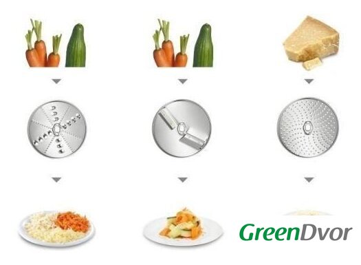 | Функции | мясорубка, блендер, цитрус-пресс, взбивание, смешивание, замешивание дрожжевого теста, терка, шинковка, ломтерезка |