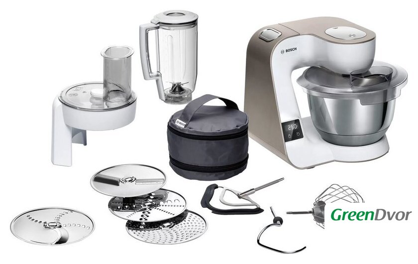 | Функции | блендер, взбивание, смешивание, замешивание дрожжевого теста, терка, шинковка, ломтерезка |