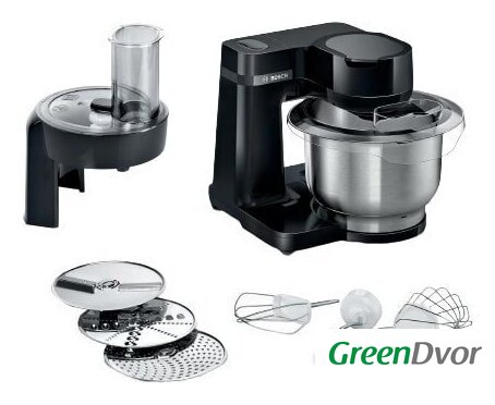 | Функции | взбивание, смешивание, замешивание дрожжевого теста, терка, шинковка, ломтерезка |