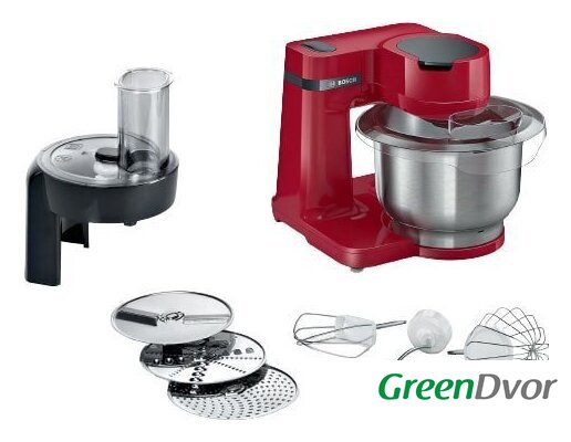 | Функции | взбивание, смешивание, замешивание дрожжевого теста, терка, шинковка, ломтерезка |