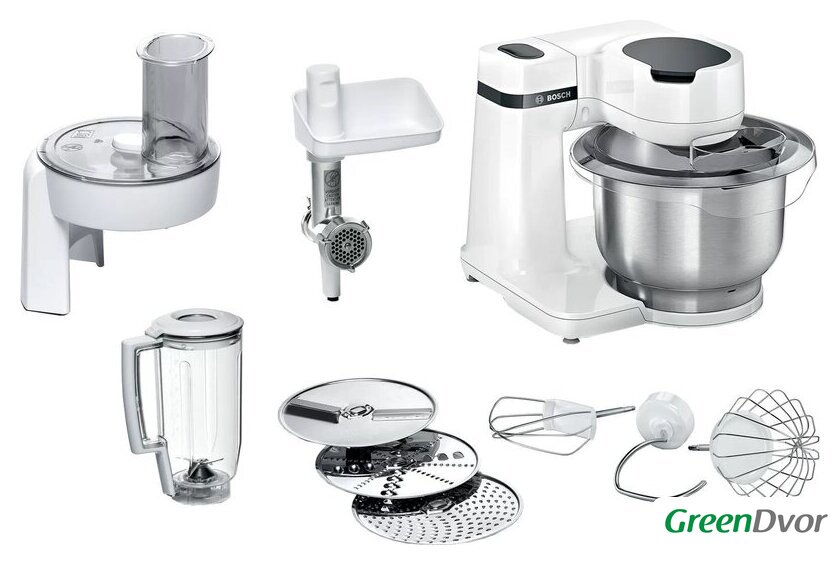 | Функции | мясорубка, блендер, взбивание, смешивание, замешивание дрожжевого теста, терка, шинковка, ломтерезка |