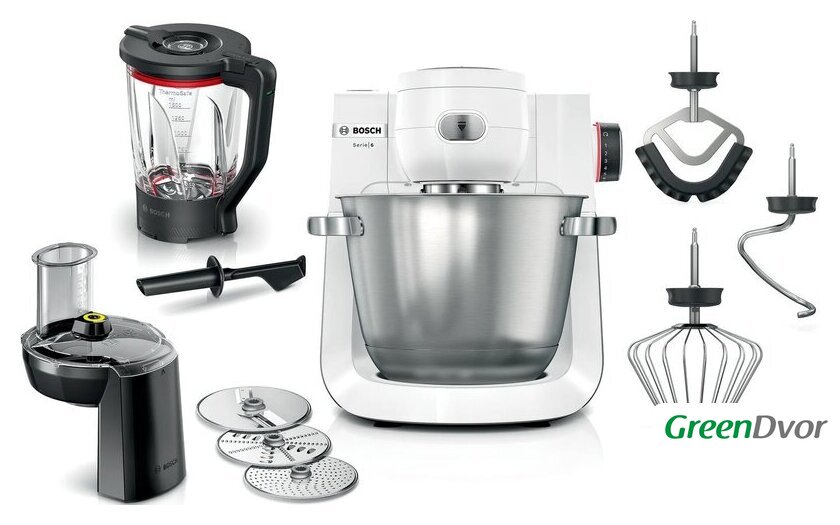 | Функции | блендер, взбивание, смешивание, замешивание дрожжевого теста, измельчитель, рубка, терка, шинковка, ломтерезка |