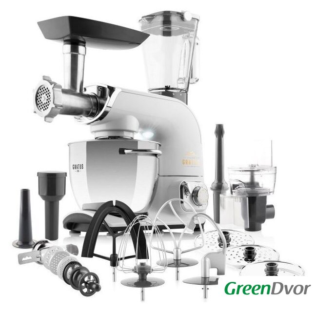 | Функции | мясорубка, блендер, взбивание, смешивание, замешивание дрожжевого теста, измельчитель, рубка, терка, шинковка, ломтерезка |